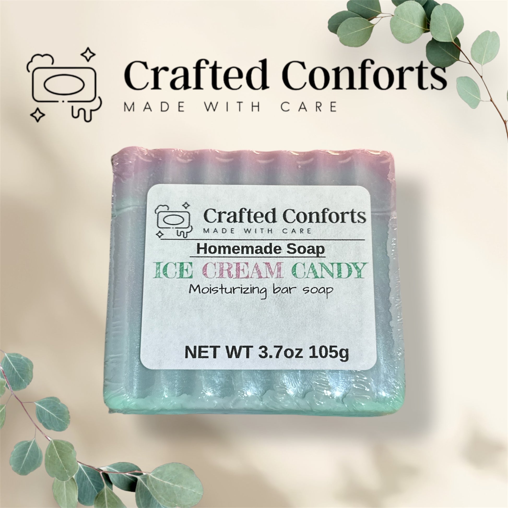 Indulge your senses with “Ice Cream Candy” — a sweet treat for your skin! Made with a gentle glycerine soap base, this playful bar is enriched with organic safflower and grapeseed oils to deeply moisturize and nourish. The luscious aroma of fragrance oils evokes memories of creamy ice cream and sugary confections, while vitamin E oil provides antioxidant protection. A drizzle of honey adds a natural touch of hydration, leaving your skin irresistibly soft and smooth. Perfect for those who love a little sweetness in their self-care routine!